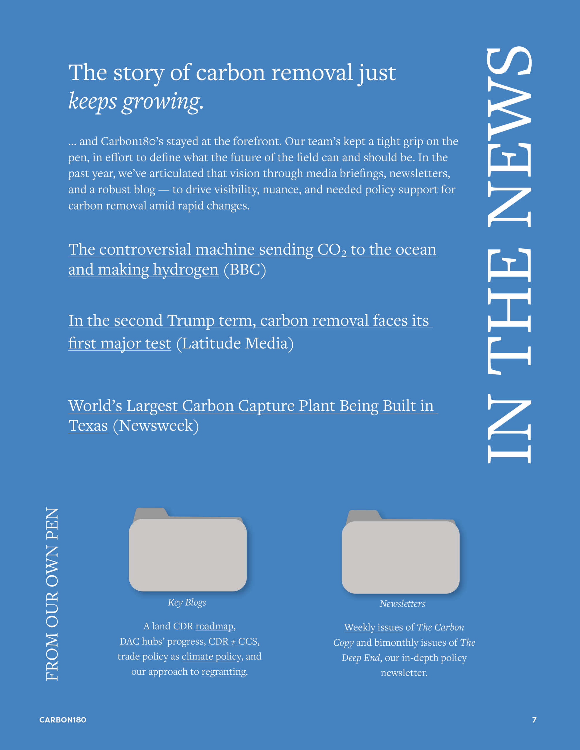 Carbon180 is a 501(c)(3) nonprofit under IRS code. We previously operated as the Center for Carbon Removal. All reports published under Center for Carbon Removal reflect the programmatic and financial standing of Carbon180.
